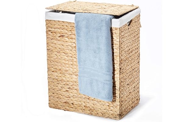 Seville Classics Handwoven Lidded Removable Washable Canvas Liner Portable Laundry Hamper Bin