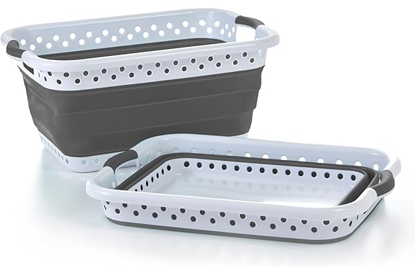 Foldable Pop Up Storage Container/Organizer - Portable Washing Tub - Space Saving Hamper/Basket (1, White/Grey)