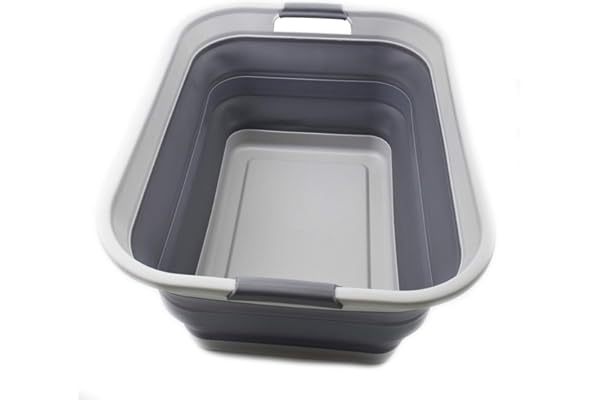 Foldable Pop Up Storage Container/Organizer - Portable Washing Tub - Space Saving Hamper/Basket, Water capacity: 32L (8.4 gallon) (Rectangular, Grey)