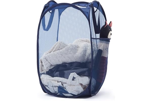 SimpleHouseware Mesh Pop-Up Laundry Hamper Basket with Side Pocket, Dark Blue