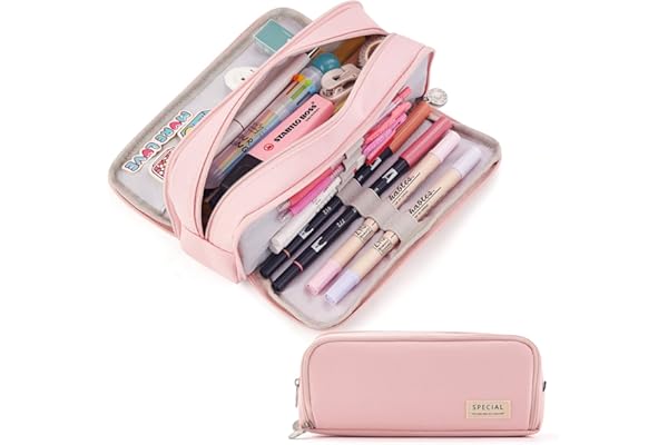 CICIMELON Large Capacity Pencil Case 3 Compartment Pouch Pen Bag for School Teen Girl Boy Men Women (Pink)