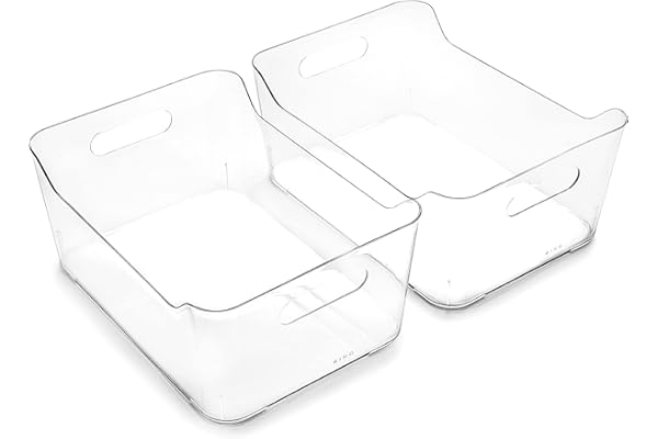 Plastic Organizer Bins, Large - 2 Pack | The SOHO Collection | Multi-Use Organizer Bins | Pantry Organizer & Freezer Organizer Bins | Plastic Storage Containers | Bins for Home & Kitchen Org