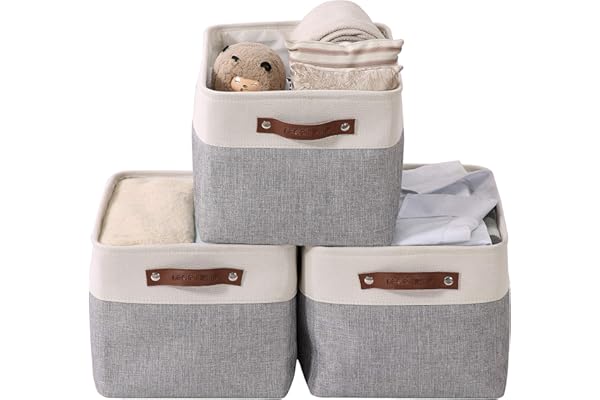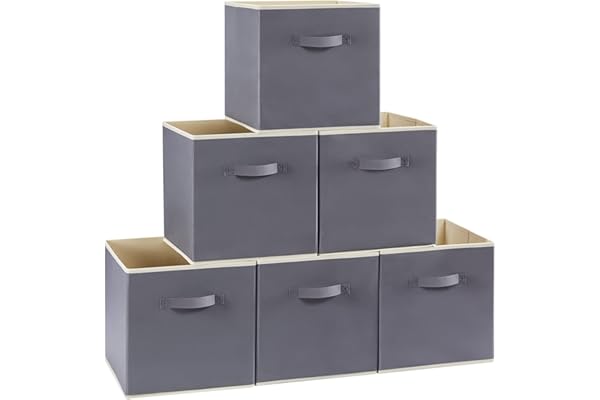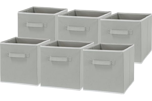 Amazon Basics Collapsible Fabric Storage Cubes Organizer with Handles, Gray