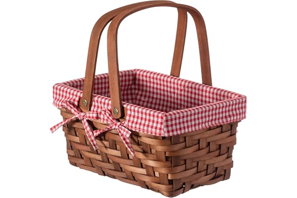 Vintiquewise(TM) Rectangular Picnic Basket Lined with Gingham Lining