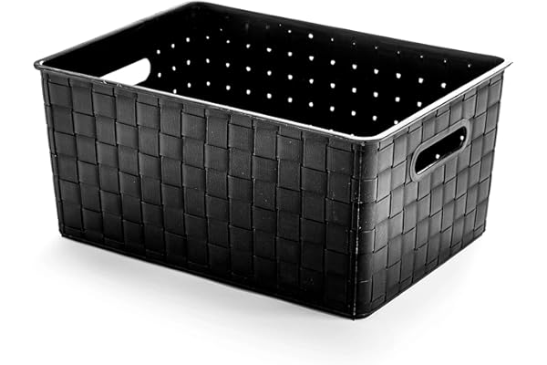 Plastic Basket, Medium - Black | THE STABLE COLLECTION | Multi-Use Plastic Bins | Built-in Handles | Pantry Organization | Home Organization | Bathroom | Storage Bins | Plastic Baskets