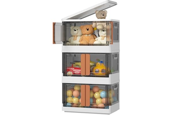 Trunk Organizer, Dorm Room Essentials, 8.4 Gal Collapsible Storage Bins, Stackable Closet Organizer, Plastic Car Organizer, 3 Pack Dorm Storage Bins with Lids and Doors