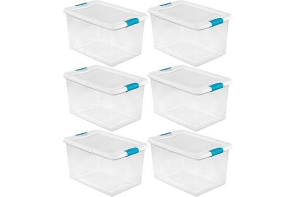 Plastic Storage Bin Tote Organizing Container with Durable Lid and Secure Latching Buckles, Stackable and Nestable, 6 Pack, clear with Black Buckle