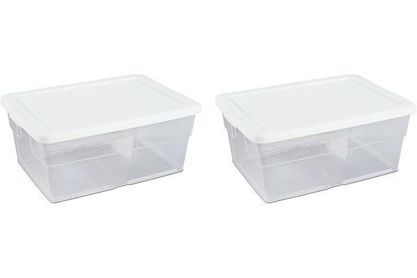 Sterilite 16 Quart Basic Clear Storage Box with White Lid (Pack of 2)