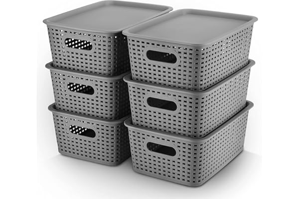 AREYZIN Plastic Storage Baskets With Lid Organizing Container Lidded Knit Storage Organizer Bins for Shelves Drawers Desktop Closet Playroom Classroom Office