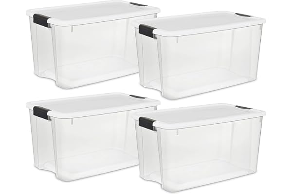 Sterilite 19889804 70 Quart/66 Liter Ultra Box Clear with a White Lid and Black Latches