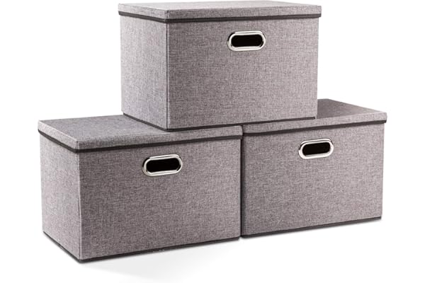 PRANDOM Large Collapsible Storage Bins with Lids [3-Pack] Linen Fabric Foldable Storage Boxes Organizer Containers Baskets Cube with Cover for Home Bedroom Closet Office Nursery (17.7x11.8x11.8)