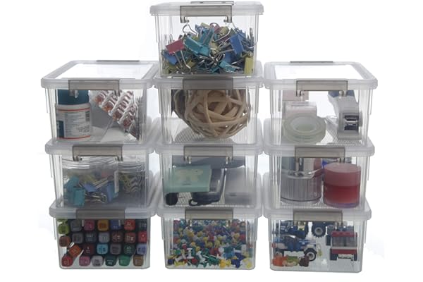 Citylife 1.3 QT 10 Pack Small Storage Bins Plastic Storage Container Stackable Box with Lids for Organizing