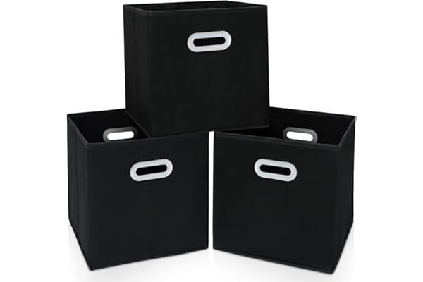 Fabric Cube Organizer with Dual Handles Foldable Cube Storage Baskets for Home Bedroom Storage,Set of 3, Black