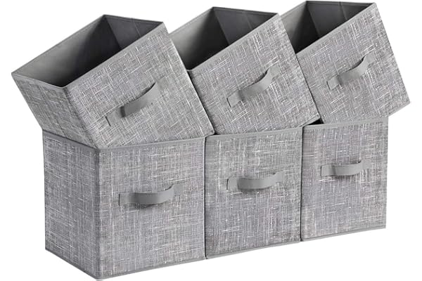 Set of 6 Non-Woven Fabric Bins with Double Handles, Closet Organizers for Shelves, Foldable, for Clothes, Toys, Gray UROB26LG