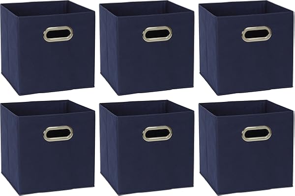 Set of 6 Cubby Cubes with Handles | Navy Blue, 6 lbs