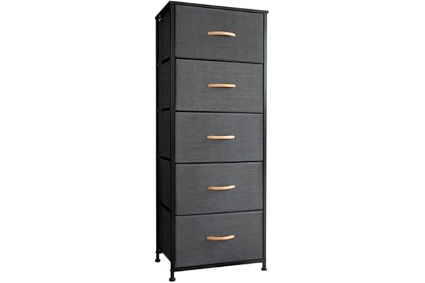 5 Drawers of Easy-Pull Fabric Bins, Organizer Unit for Bedroom, Hallway, Entryway, Dark Grey