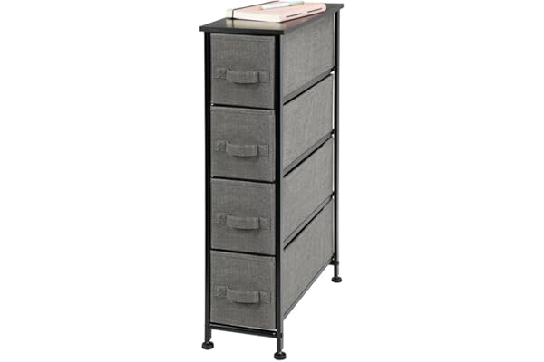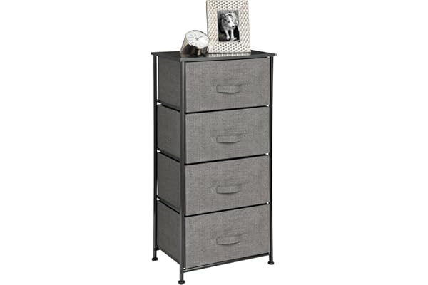 Sturdy Steel Frame, Wood Top, 4 Drawer Easy Pull Fabric Bin - Organizer for Bedroom, Hallway, Entryway, Closet - Textured Print - Charcoal Gray