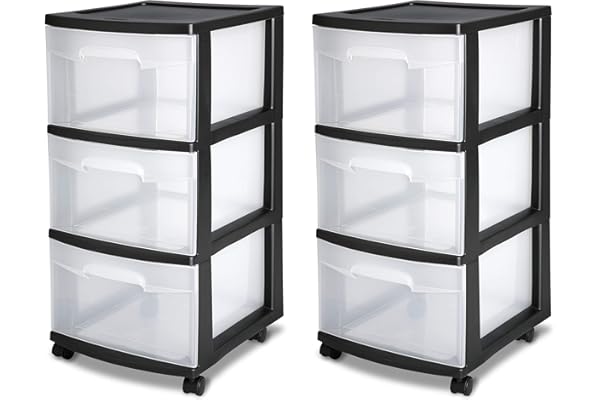 Black Frame with Clear Drawers and Black Casters, 2-Pack