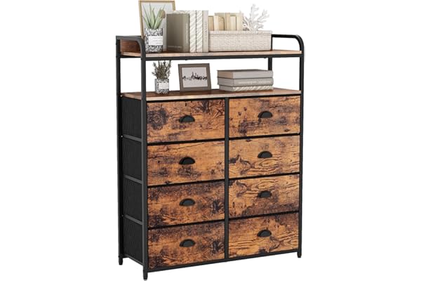 Furologee 8 Storage Drawers Dresser for Bedroom with Double Shelf Tall