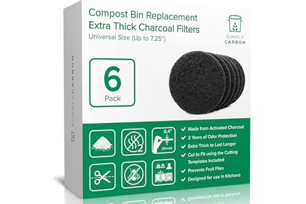 Longer Lasting Activated Charcoal - Universal Size Fits ALL Compost Bins up to 7.25" Filter Size - Replacement Set of 6 (by Simply Carbon)