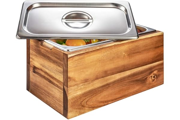 Rust Proof Stainless Steel Insert, Countertop Compost Bin with Lid and Acacia Wood Box- Large Compost Bin Kitchen