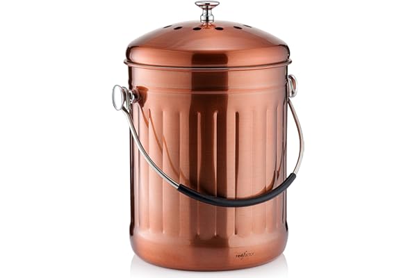 Stainless Steel Food Waste Bucket with Innovative Dual Filter Technology - Includes Spare Filters (Matt Copper, 1.3 Gallon)