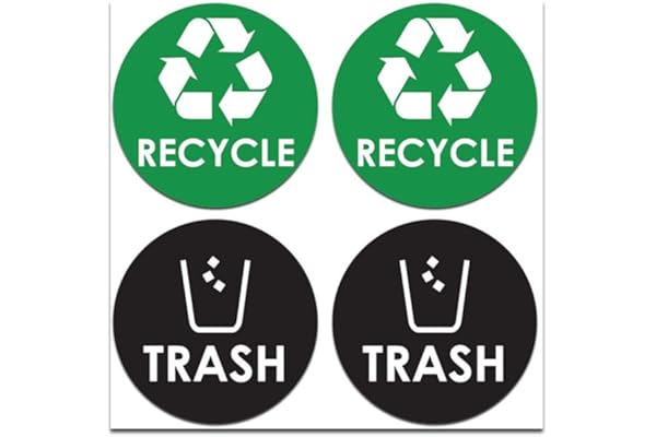 4" x 4" Black Trash and Green Recycle Home Round Vinyl Decals (4 Pack)
