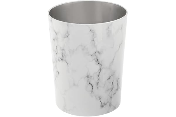 mDesign Round Metal Small 1.7 Gallon Recycle Trash Can Wastebasket, Garbage Container Bin for Bathrooms, Kitchen, Bedroom, Home Office
