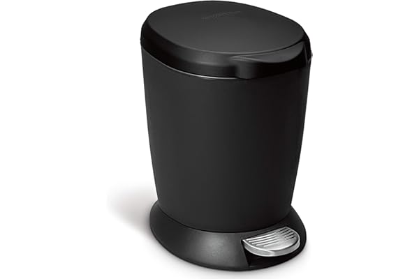 simplehuman 6 Liter / 1.6 Gallon Compact Plastic Round Bathroom Step Trash Can