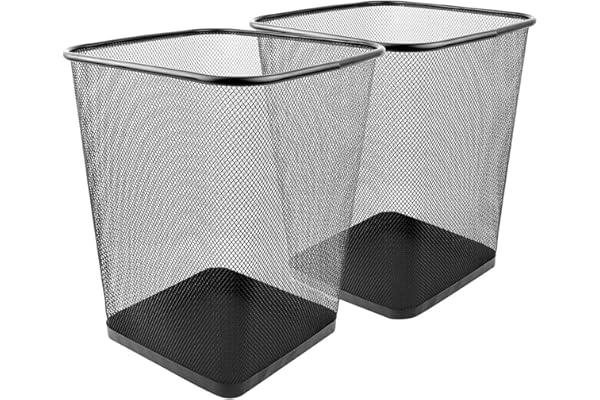 2-Pack, 6 Gallon Black Mesh Square Trash Cans, Lightweight, Sturdy for Under Desk, Kitchen, Bedroom, Den, or Recycling Can,6 Gallon Square Trash