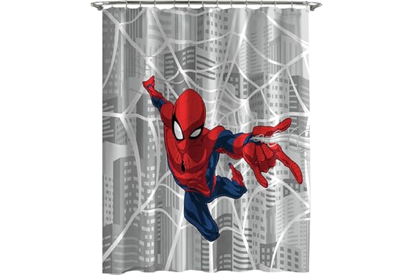 Jay Franco Marvel Spiderman City Web Shower Curtain & Easy Care Fabric Kids Bath Curtain (Official Marvel Product)