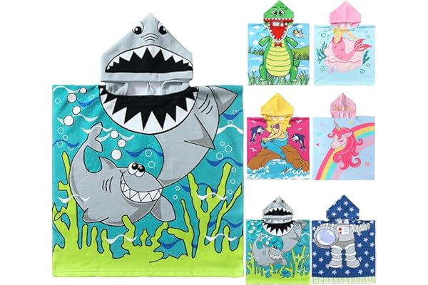 Shark Hooded Bath Towel Wrap, Toddler Pool Towel with Hood