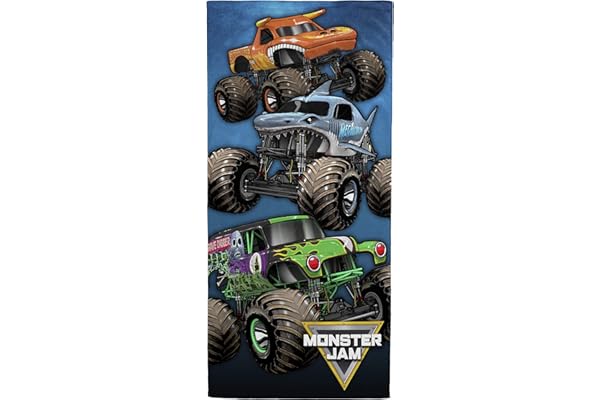 Features Grave Digger & Megalodon - Super Soft & Absorbent Cotton Towel, Measures 28 x 58 inches (Official Monster Jam Product)