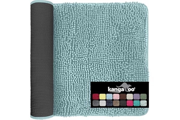 Extra Soft and Absorbent Shag Bathroom Rugs, Machine Wash Mat, Strong Underside, Plush Carpet Mats for Kids Tub, Shower, Bathtub and Bath Room, 24x17, Seafoam