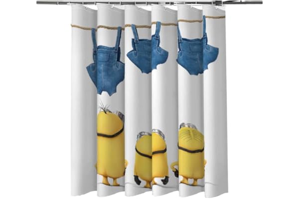Kids Shower Curtain Cartoon Characters Cute Yellow Funny Shower Curtain for Child Bathroom