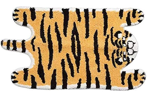 Cute Soft Tiger Shaped Animals Bath Mat Area Rug for Bedroom Bathroom Kitchen Floor Water Absorption Non-Slip Small Carpet Door Mat Kid's Room Playmat (50*90CM)