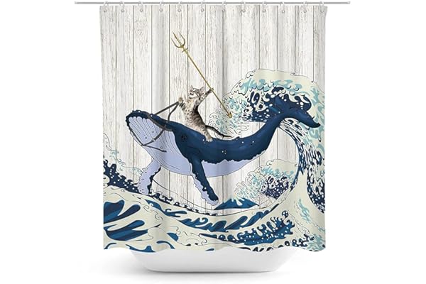 Coxila Funny Cat Shower Curtain Japanese Sea Wave Cute Whale Barn Door Brave Shark Cartoon Animal Kids Children 60 x 72 Inch Polyester Fabric Waterproof 12 Pack Hooks