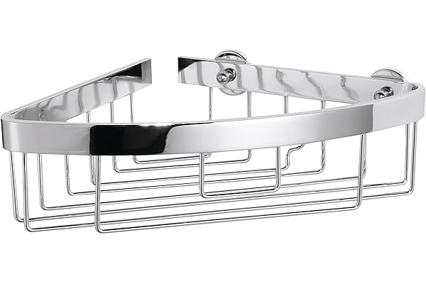 Wall Mounted Bathroom Shower Corner Caddy, Chrome-Plated Aluminium Shower Basket, Removable Glue Adhesive.