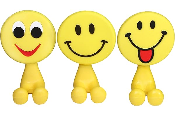 Set of 3 Pcs Emoji Emoticon Style Rubber Wall Hanger Hooks
