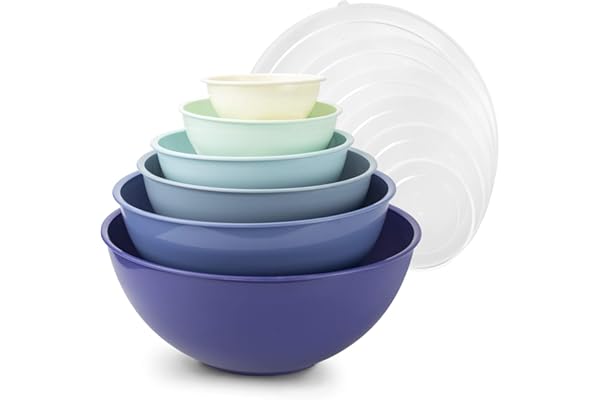 12 Piece Nesting Bowls Set includes 6 Prep Bowls and 6 Lids, Microwave Safe Mixing Bowl Set (Blue Ombre)