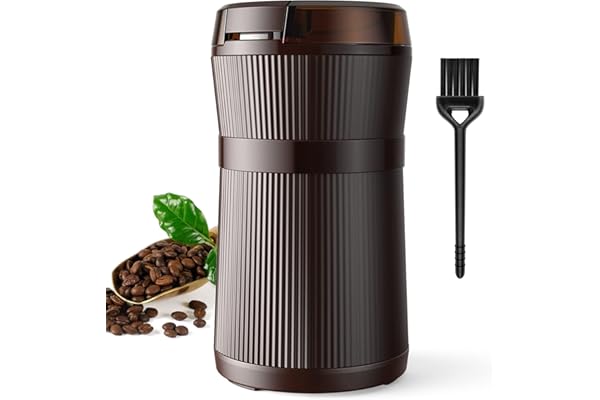 Quiet Electric Coffee Grinder with One-Touch Control, 200W Coffee Bean Grinder for Coffee Beans, Spices, Seeds, Herbs, Stainless Steel Cup and Blades for Efficient Grind, Brown
