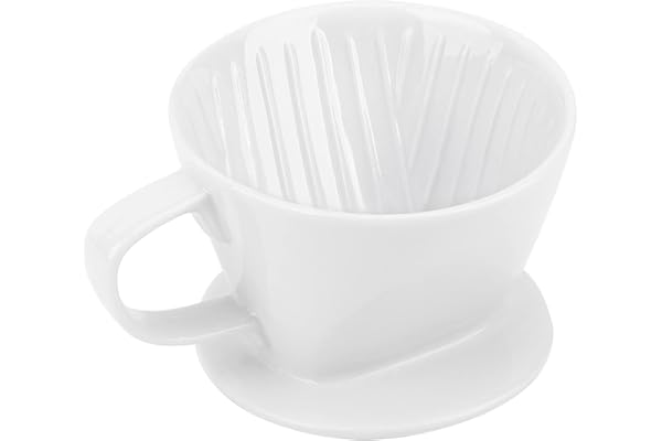 One Single Cup White Ceramic Coffee Dripper, 1 Set Size No.2 Reusable Filter Cone Drip Holder Slow Brewer with 3 Holes Flat Bottom for Travel, Camping, Office, Home