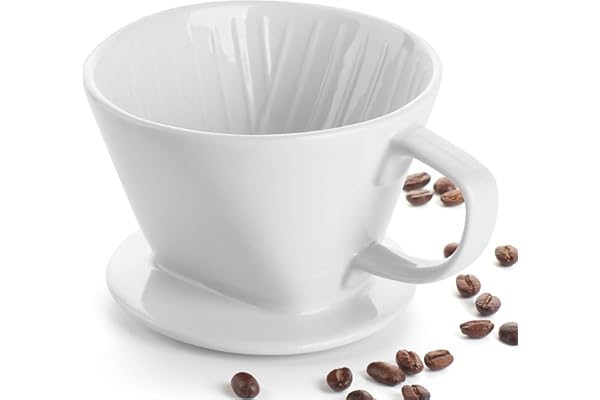 Ceramic Slow Brewing Accessories for Home, Cafe, Restaurants - Easy Manual Brew Maker Gift - Strong Flavor Brewer - V02 Paper Cone Filters - White, 2 Cup