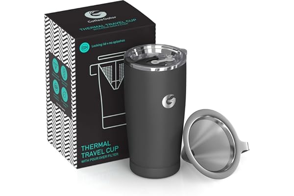 20 oz Stainless-Steel, Vacuum Insulated Tea and Coffee Tumbler for Women and Men with Leakproof Lid & Paperless Dripper, Gray