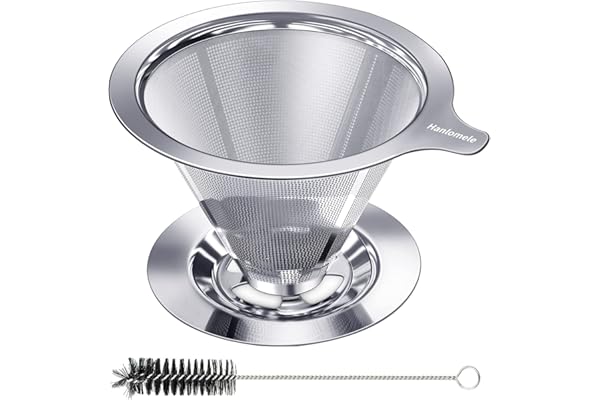 Paperless Reusable Coffee Filter, Pour Over Coffee Maker for Single Cup Brew, Double Mesh Design of Stainless Steel Cone Filter for Perfect Extraction (1-2 Cup)