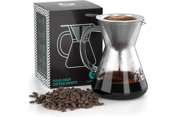 14 oz Paperless, Portable, Drip Coffee Brewer Pour Over Set w/ Glass Carafe & Stainless-Steel Mesh Filter, Clear