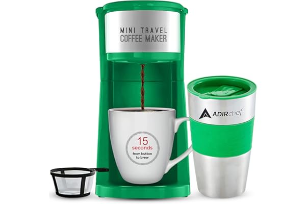 AdirChef Single Serve Mini Travel Coffee Maker & 15 oz