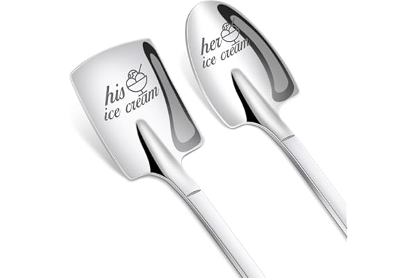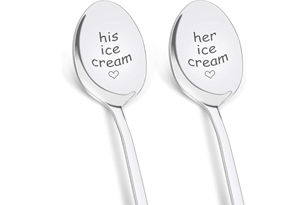 2 Pcs His and Hers Gifts Ice Cream Spoons Stainless Steel Couple Gifts, Birthday Wedding Engagement Gifts for Couples
