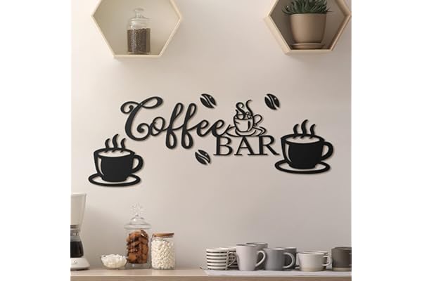 Metal Coffee Bar Sign Rustic Coffee Bar Hanging Wall Decor Coffee Signs for Coffee Bar Metal Coffee Wall Art for Coffee Bar Home Office Kitchen (Coffee Bar, Bean and Cup Style)