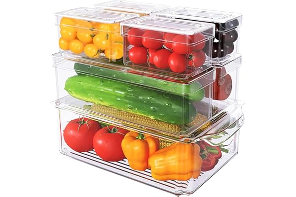 Fridge Organization and Storage Clear Containers, BPA-Free Plastic Pantry Storage Bins for Fruits, Vegetable, Food, Drinks